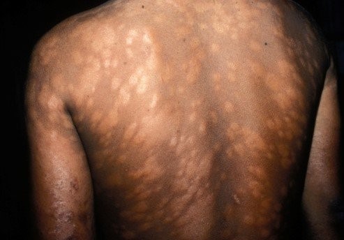 The patches are a different colour from the rest of the skin. They have no feeling if they are touched. If you notice a patch of skin like this, speak to a health worker as soon as you can.